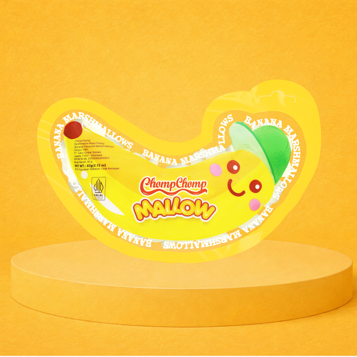 Marshmallow Chompchomp, sebuah produk marshmallow impor yang telah meraih sertifikasi halal dan terdaftar resmi di Badan Pengawas Obat dan Makanan (BPOM), menghadirkan kelezatan yang tak tertandingi. Salah satu variannya yaitu Banana Mallow hadir dalam bentuk Pisang yang menarik dengan rasa vanila yang lezat.